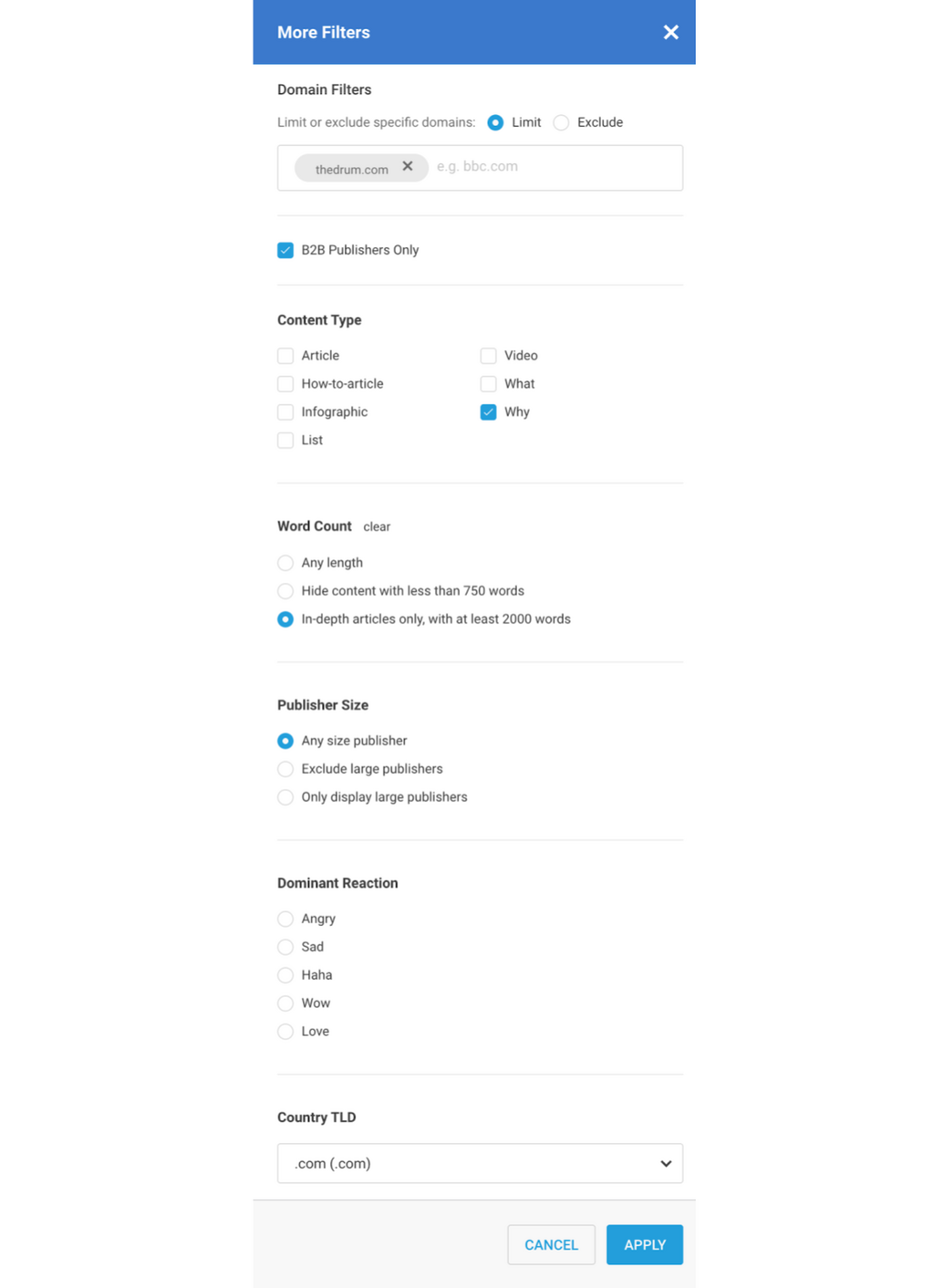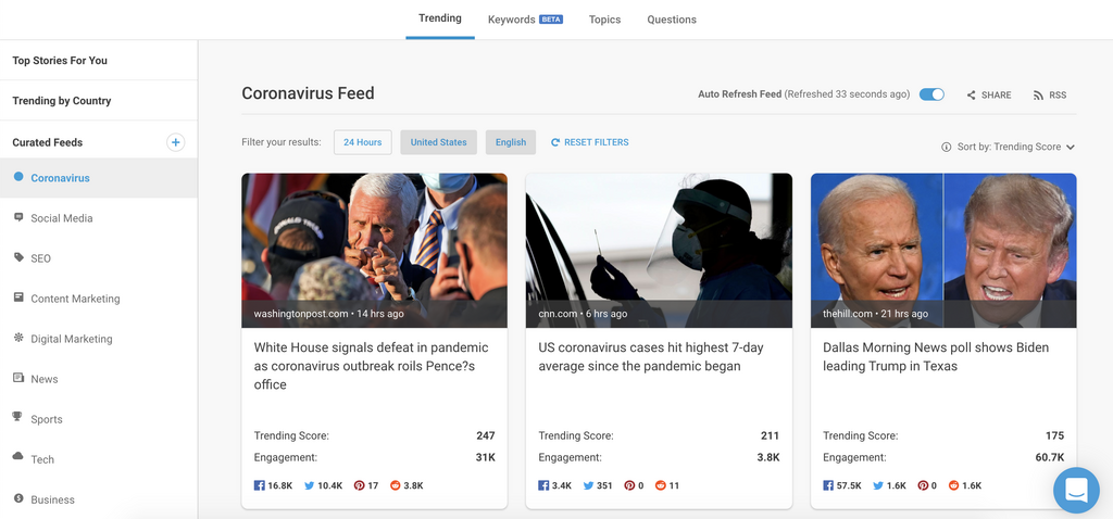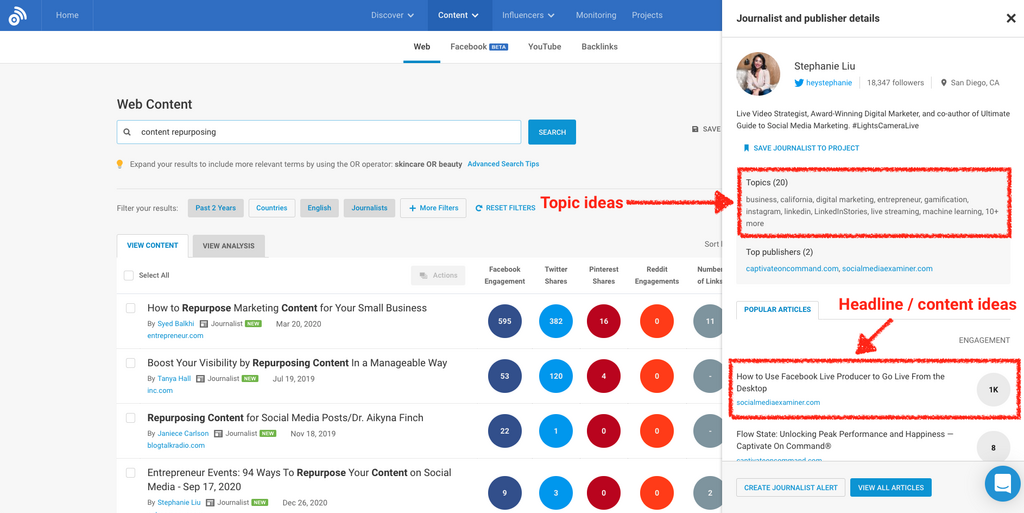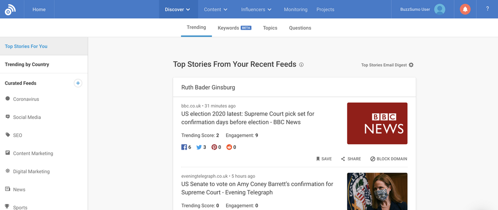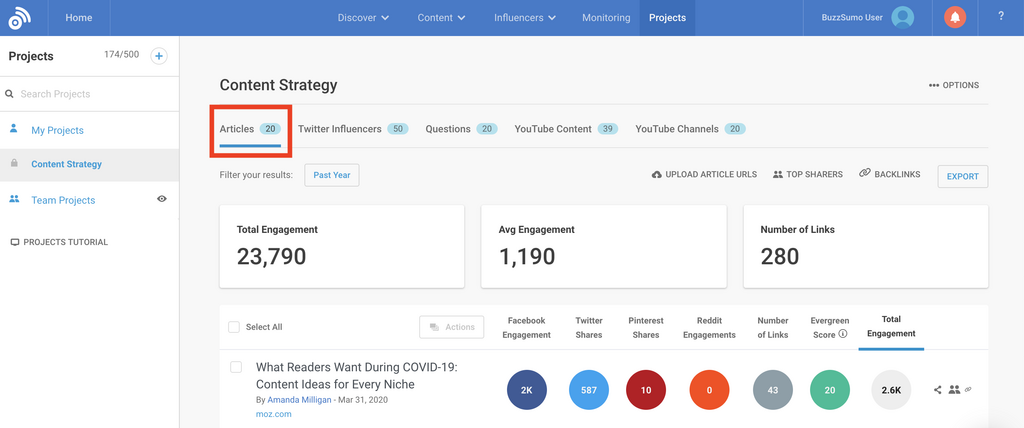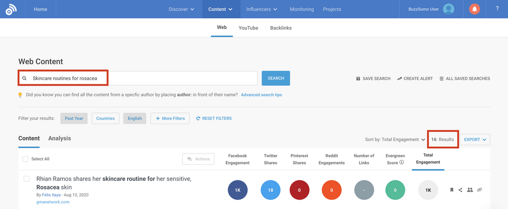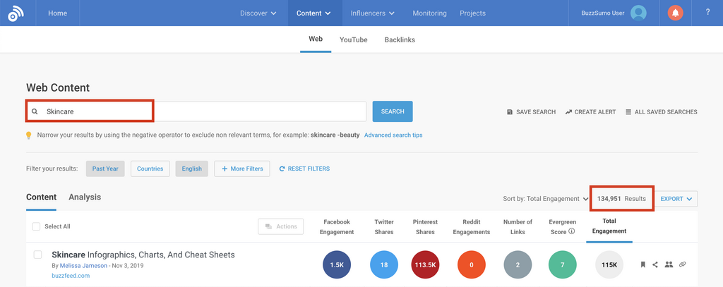 - Salvage the screech materials with basically probably the most hyperlinks and social engagement, to rep ideas for applications on how one can make the most of BuzzSumo to rep distinctive screech materials effectively.