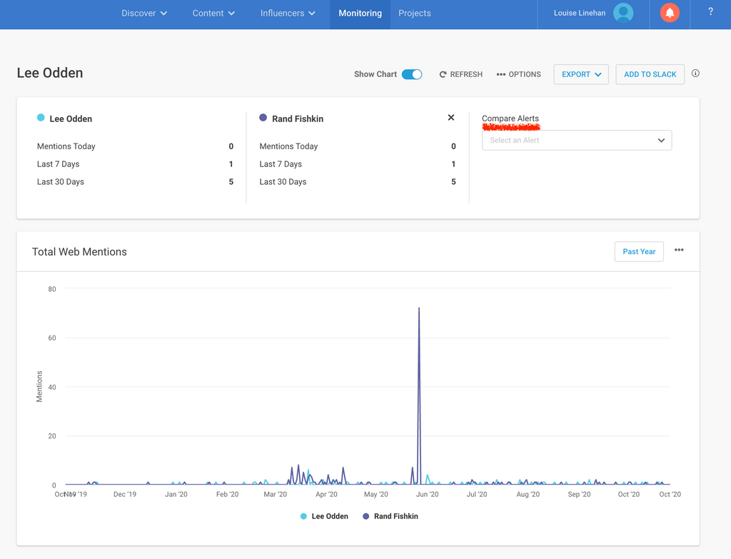 As an illustration, under we are able to behold that Spark Toro’s Rand Fishkin good points critically additional mentions than Lee Odden.